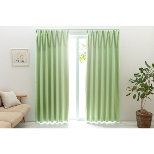 ユニベール 防炎 1級遮光 ドレープカーテン ベルーイ 幅1000×長さ2000mm グリーン 1パック(2枚)