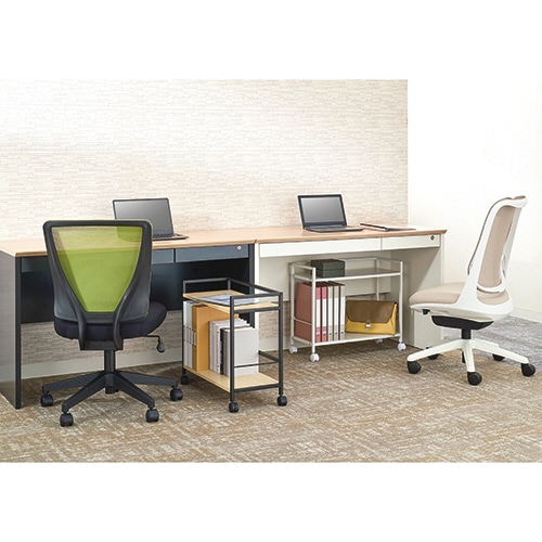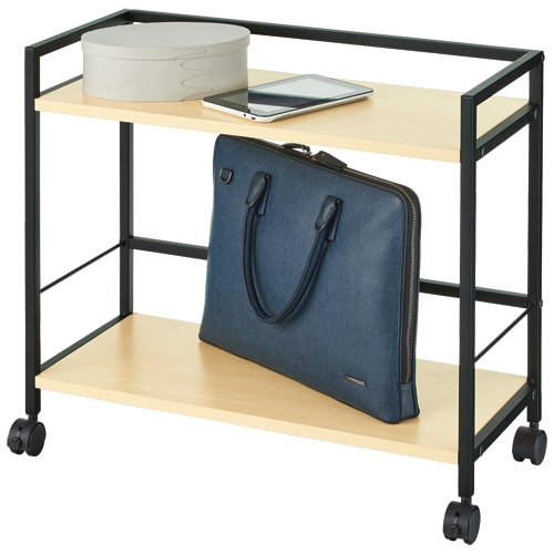●2段ワイドのデスクワゴン。天板はナチュラル、フレームはブラックです。