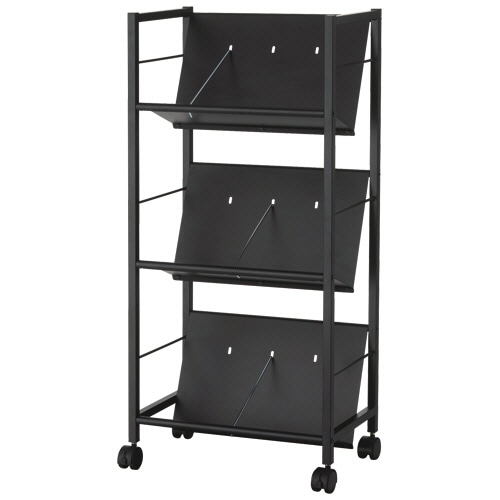 ●スチールタイプのファイルラックワゴン3段、色はブラックです。