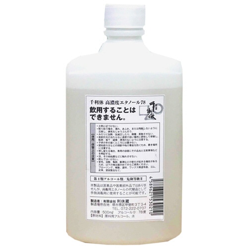 利休蔵 高濃度エタノール(ALC.78%) ノズル2本付 500ml/本 013419 1セット(2本)