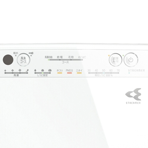 ●いろんなシーンで使える、見た目も性能もこだわったスリムタワー型の加湿ストリーマ空気清浄機。本体色はホワイトです。