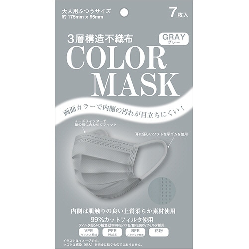 エクスプラス 不織布カラーマスク グレー 1パック(7枚)