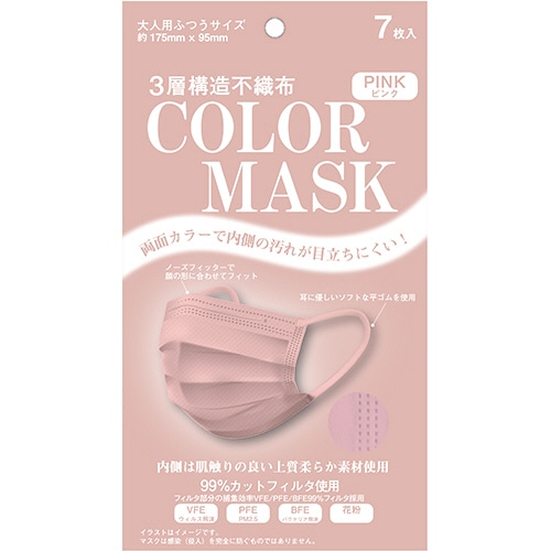 エクスプラス 不織布カラーマスク ピンク 1パック(7枚)