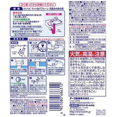 アース製薬 らくハピ マッハ泡バブルーン 洗面台の排水管 200mL 1本