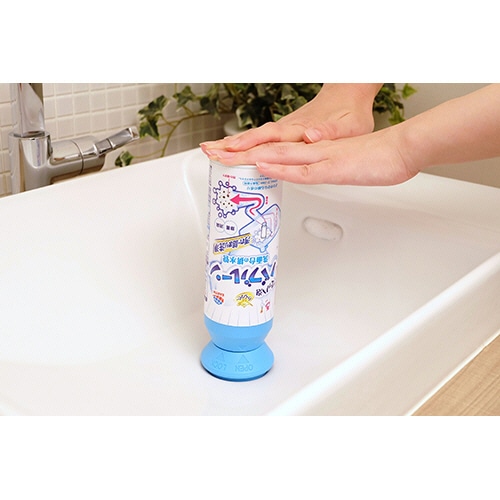 ●マッハ泡で汚れ・詰まりを押し流す、洗面台の排水管用洗浄剤。泡がオーバーフロー穴から噴き出て、排水管を突き抜けたことがひとめで分かります。1本で2~3回分です。