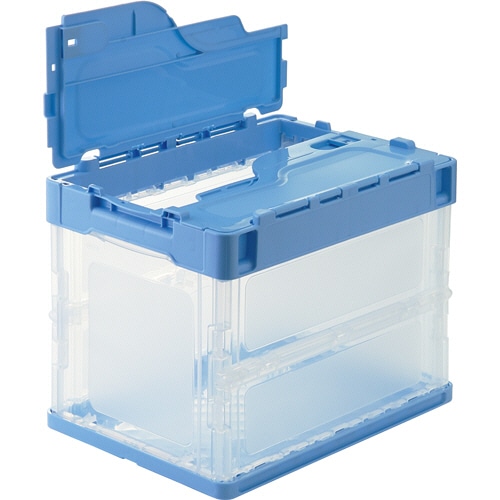 ●フタ一体型、容量20L、ブルー/透明の折りたたみコンテナ。