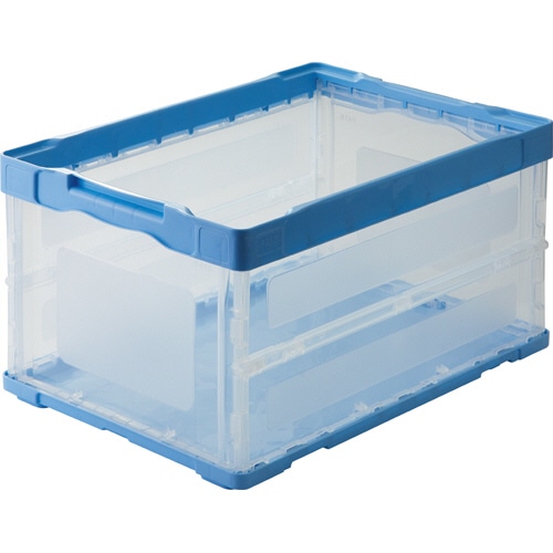 TANOSEE 折りたたみコンテナ 軽量タイプ フタなし 40L ブルー/透明 1台