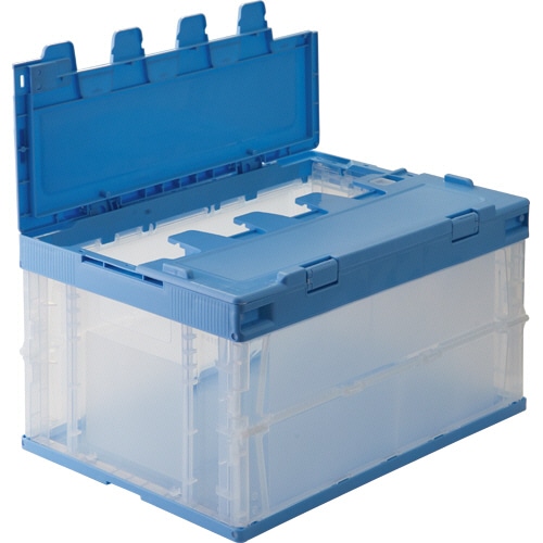 TANOSEE 折りたたみコンテナ 一般タイプ フタ一体型 40L ブルー/透明 1台
