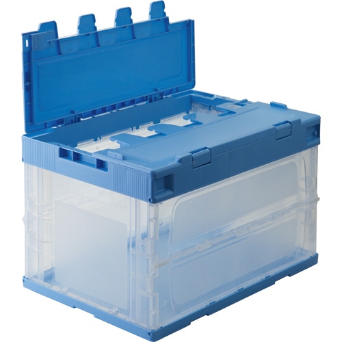 TANOSEE 折りたたみコンテナ 一般タイプ フタ一体型 50L ブルー/透明 1台