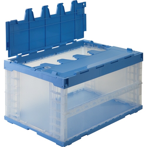 TANOSEE 折りたたみコンテナ 一般タイプ フタ一体型 75L ブルー/透明 1台