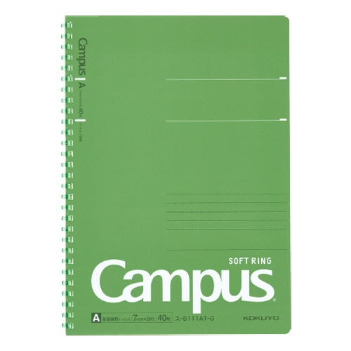 コクヨ キャンパス ソフトリングノート セミB5 A罫 40枚 グリーン ス-S111AT-G 1セット(5冊)