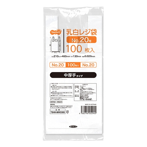 | 商品仕様 | ●サイズ/20号 ●寸法/幅210×マチ幅130×高さ460mm ●厚さ/0.02mm ●色/乳白色 ●材質/高密度ポリエチレン(HDPE) ●エンボス加工/あり ●その他仕様/●フック穴、ミシン目、ベロあり ●備考/※商品の安定供給を維持するため、生産国・製造工場などを変更させていただく場合がございます。 |