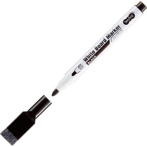 TANOSEE イレーザー付ホワイトボードマーカー 細字・丸芯 黒 1セット(10本)