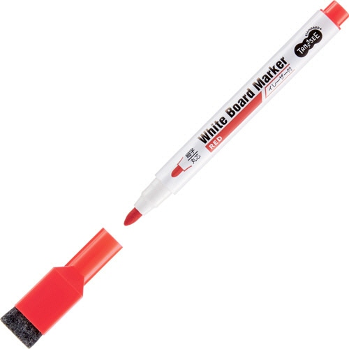 TANOSEE イレーザー付ホワイトボードマーカー 細字・丸芯 赤 1セット(10本)