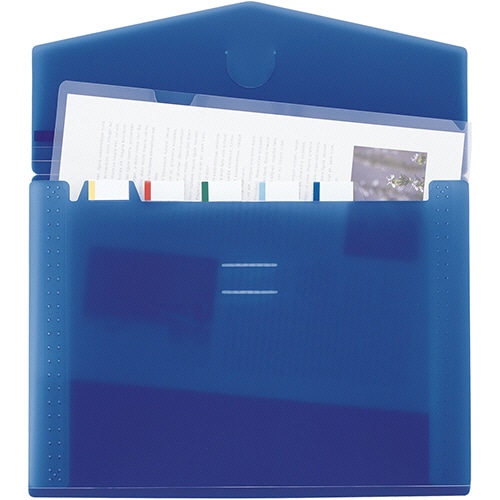●A4クリヤーホルダーも収容できるヨコ型ファイルで、6ポケット・色はインディゴブルーの5冊セットです。