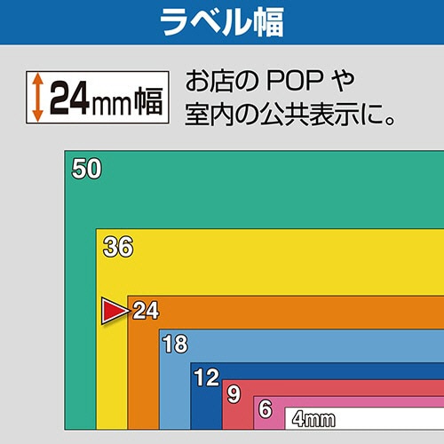 商品仕様 | ●テープ種類/白ラベル ●テープ幅/24mm ●テープ長さ/8m ●テープ色/白 ●文字色/黒 ●シリーズ名/TEPRA |