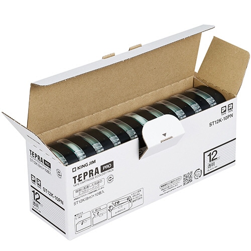 キングジム テプラ PRO テープカートリッジ 12mm 透明/黒文字 エコパック ST12K-10PN 1セット(30個:10個×3パック)