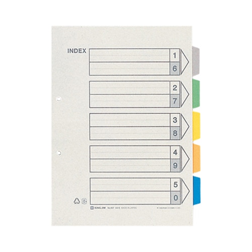 キングジム カラーインデックス A4タテ 2穴 5色5山+扉紙 907-2K 1セット(20組:2組×10パック)