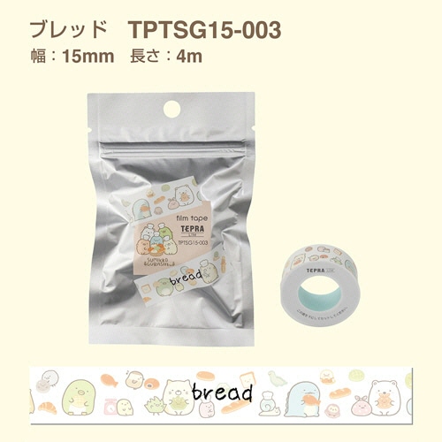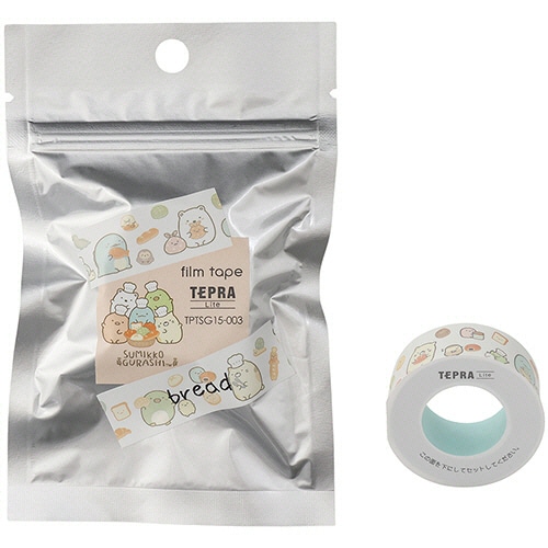 ●幅15mm、ブレッド柄の「テプラ」Liteフィルムテープ(すみっコぐらし柄)5個セットです。