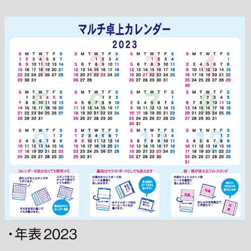 | 商品仕様 | ●タイプ/卓上カレンダー ●寸法/タテ125×ヨコ148mm ●枚数/15枚(表紙共) ●材質/マットコート紙 ●重量/125g ●付属品/ホワイトボード、フォトスタンド用シート ●その他仕様/●表示:六曜 ●個装形態:紙袋包装 ●スチロール樹脂ケース入 ●生産国:中国 |