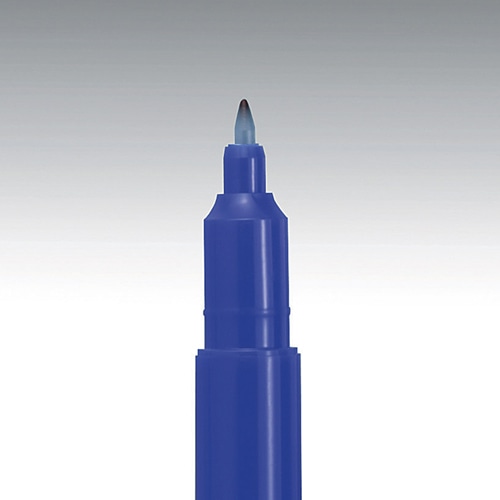 商品仕様 | ●タイプ/使い切りタイプ ●インク種類/油性アルコール系インク ●インク色/青 ●芯の太さ/細字・極細 ●芯形状/丸芯・丸芯 ●線幅/細字:0.8mm、極細:0.5mm ●全長/140mm ●軸径/11mm ●材質/軸・キャップ・先栓:R-PP ●重量/10g ●インクカラー/ブルー(系) |