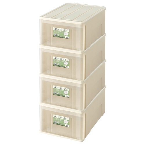 天馬 たっぷり収納ケース 55M W400×D550×H250mm ホワイト/クリア 1セット(4個)