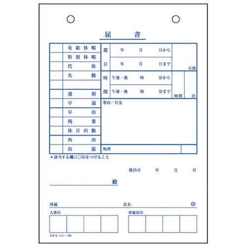 コクヨ 社内用紙 届書 B6 2穴 100枚 シン-190 1セット(10冊)