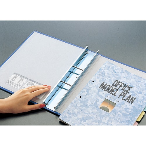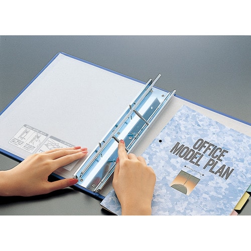 ロングタイプのとじ具だから書類をしっかり押さえる。