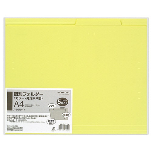 コクヨ 個別フォルダー(カラー・PP製) A4 黄 A4-IFH-Y 1セット(30冊:5冊×6パック)