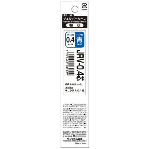 ゼブラ ジェルボールペン替芯 JRV-0.4芯 青 P-RJRV4-BL 1セット(10本)