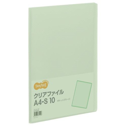 TANOSEE クリアファイル A4タテ 10ポケット 背幅8mm グリーン 1セット(80冊)