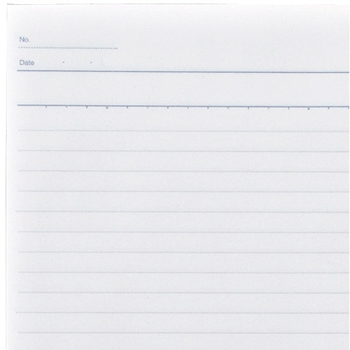 | 商品仕様 | ●サイズ/セミB5 ●寸法/タテ252×ヨコ179mm ●枚数/50枚 ●罫/B罫 ●罫幅/6mm ●行数/35行 ●材質/上質紙 |