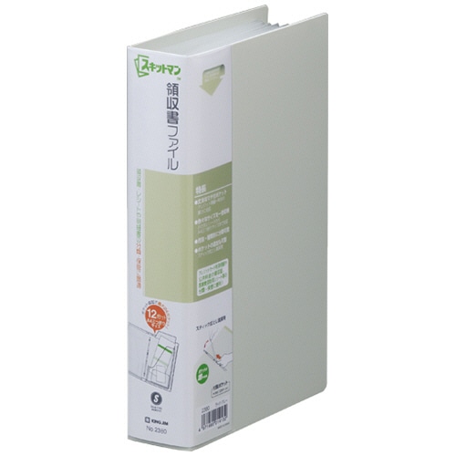 キングジム スキットマン 領収書ファイル A4長辺1/3 4穴 12ポケット付属 背幅40mm ライトグレー 2380-LG 1セット(5冊)