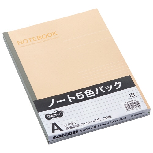 TANOSEE ノートブック セミB5 A罫7mm 30枚 5色パック 1セット(50冊:5冊×10パック)