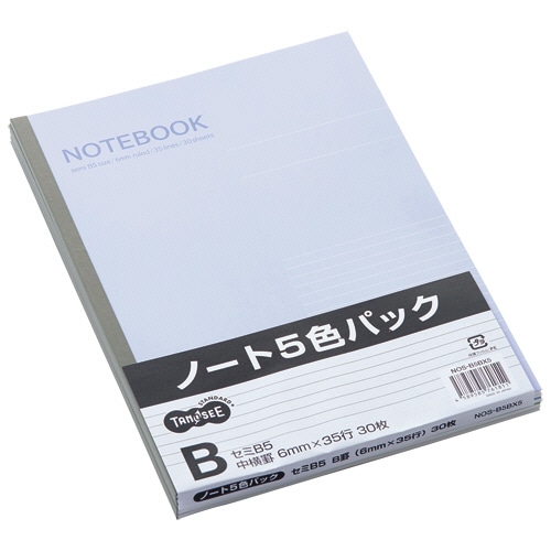 ●セミB5サイズ、B罫、30枚、スタンダードタイプのノートの5色パック10セットです。
