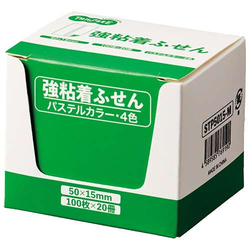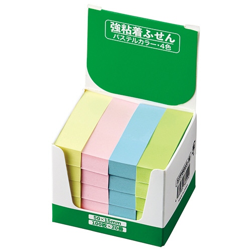 TANOSEE 強粘着ふせん 50×15mm パステルカラー・4色 1セット(60冊:20冊×3パック)