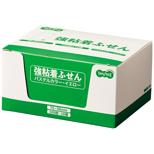 | 商品仕様 | ●寸法/50×75mm ●粘着側/短辺 ●色/イエロー(パステルカラー) ●粘着力/強粘着 ●材質/再生紙(古紙パルプ配合) ●1パックあたり/100枚×10冊 ●シリーズ名/TANOSEE(エコロジー) ●カラー/イエロー(系) |