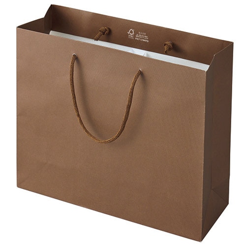 | 商品仕様 | ●サイズ/M-W ●タイプ/手提紙袋 ●色/ブラウン ●寸法/幅320×マチ幅110×高さ270mm ●取っ手/紙製編み紐 ●表面加工/エンボス加工 ●坪量/150g/m2 ●材質/晒クラフト ●その他仕様/●口・底部ボール芯 ●表面:エンボス加工 ●備考/※メーカー都合により、パッケージデザインおよび仕様が変更になる場合がございます。 |