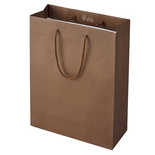 商品仕様 | ●サイズ/M ●タイプ/手提紙袋 ●色/ブラウン ●寸法/幅270×マチ幅110×高さ350mm ●取っ手/紙製編み紐 ●表面加工/エンボス加工 ●坪量/150g/m2 ●材質/晒クラフト ●その他仕様/●口・底部ボール芯 ●表面:エンボス加工 ●備考/※メーカー都合により、パッケージデザインおよび仕様が変更になる場合がございます。 |