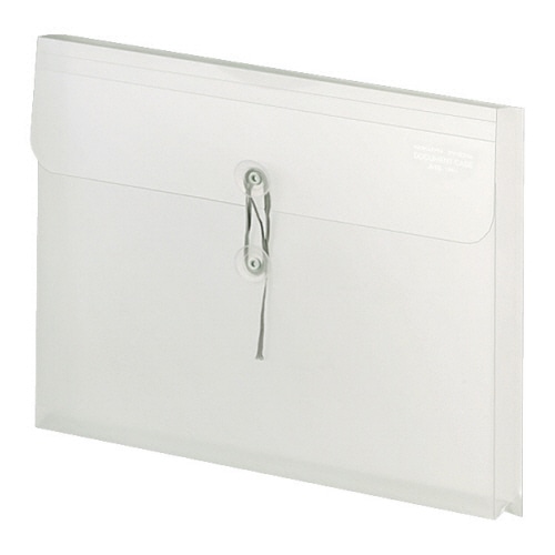 マチ幅30mmで、個別フォルダーや小物も収容できる。中身がひと目で分かる透明の封筒型。