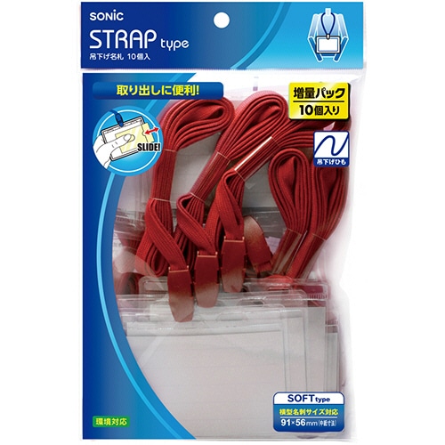 ソニック 吊り下げ名札 スタンダードタイプ ソフト 赤 NF-452-R 1セット(30個:10個×3パック)