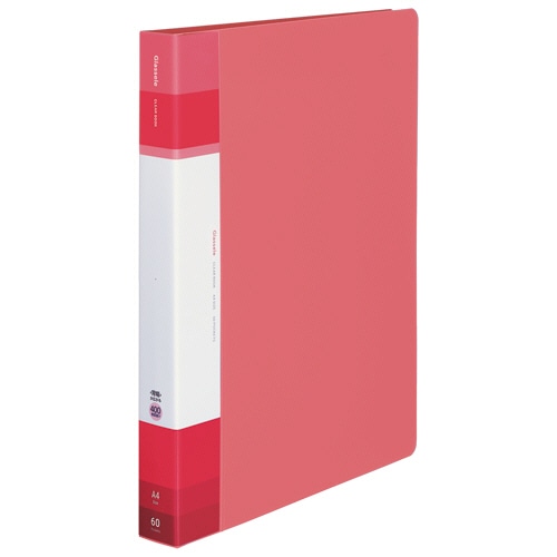 コクヨ クリヤーブック(Glassele) 固定式・背ポケット A4タテ 60ポケット 背幅32-47mm コーラルピンク ラ-GLB60P 1セット(4冊)