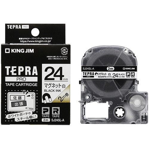 キングジム テプラ PRO テープカートリッジ マグネットテープ ロングタイプ2m巻 24mm 白/黒文字 SJ24SL-A 1セット(3個)