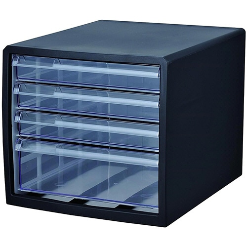 ●A4用紙も収納可能な引き出しサイズ。浅型3段・深型1段のレターケース、ブラックの4台セットです。