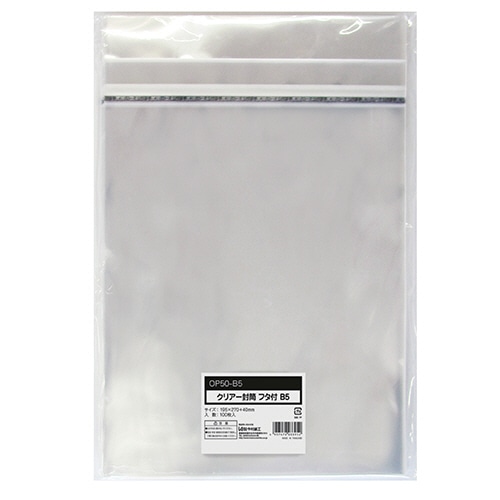 今村紙工 クリアー封筒 フタ・テープ付 B5 195×270+40mm 0.05mm厚 OP50-B5 1セット(1000枚:100枚×10パック)