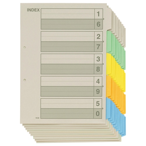 | 商品仕様 | ●サイズ/A4タテ ●色/5色 ●山数/5山 ●対応穴数/2穴 ●寸法/タテ297×ヨコ210(+12)mm ●山寸法/W12×H48mm ●厚さ/約0.13mm ●材質/再生紙 ●重量/312g ●備考/紙厚は季節により変化する場合があります。 |