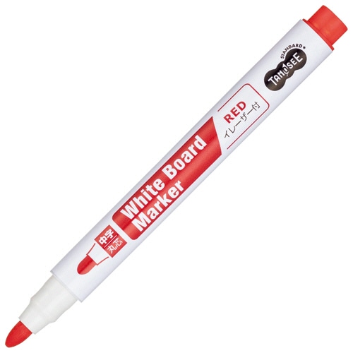 TANOSEE イレーザー付ホワイトボードマーカー 中字・丸芯 赤 1セット(10本)