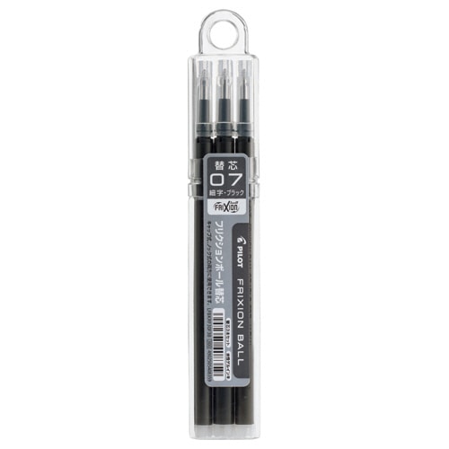 商品仕様 | ●インク種類/フリクションインキ ●インク色/ブラック ●ボール径/0.7mm ●全長/111mm ●直径/6.0mm ●対応ボールペン/フリクションボールビズ、フリクションボール、フリクションボールノック ●その他仕様/●筆跡幅:0.35mm ●備考/※証書類・宛名書きには使えません。 ※60℃以上になる場所に放置しないでください。インキが無色になります。 ※感熱紙などの紙の種類によっては、消去に不向きな場合があります。 |