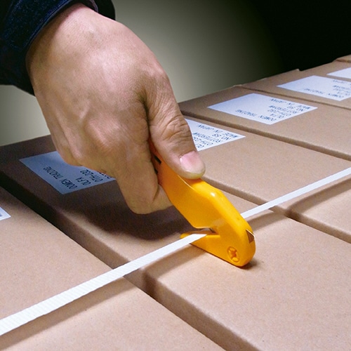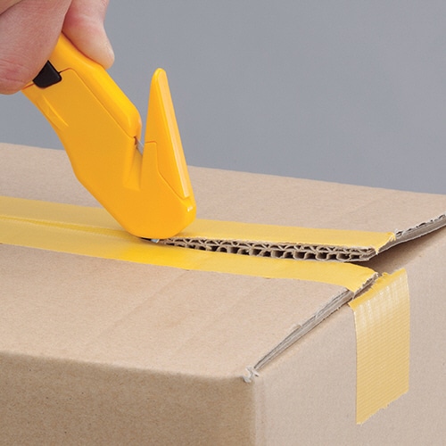 ●くちばし状のガイドで「すくい切り」でき、荷物や下地を傷つけることなくシュリンクラップや一般梱包用PPバンド、緩衝材の切断が可能です。またテープスリッターを使えば中身を切ることなく開梱できます。