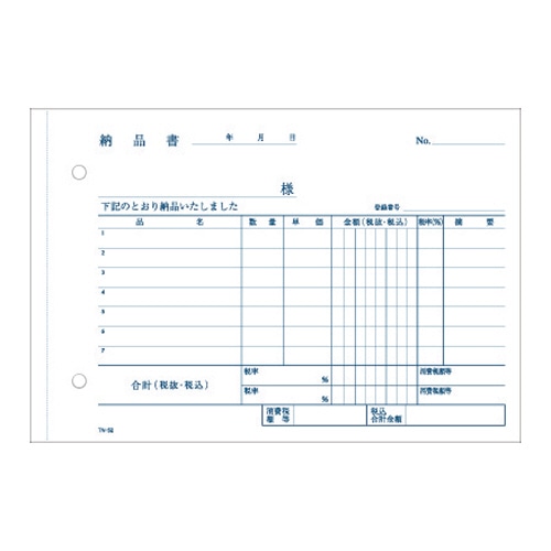 ●軽減(複数)税率対応、ノーカーボン・B6ヨコ型・2枚複写の納品書。10冊セットです。